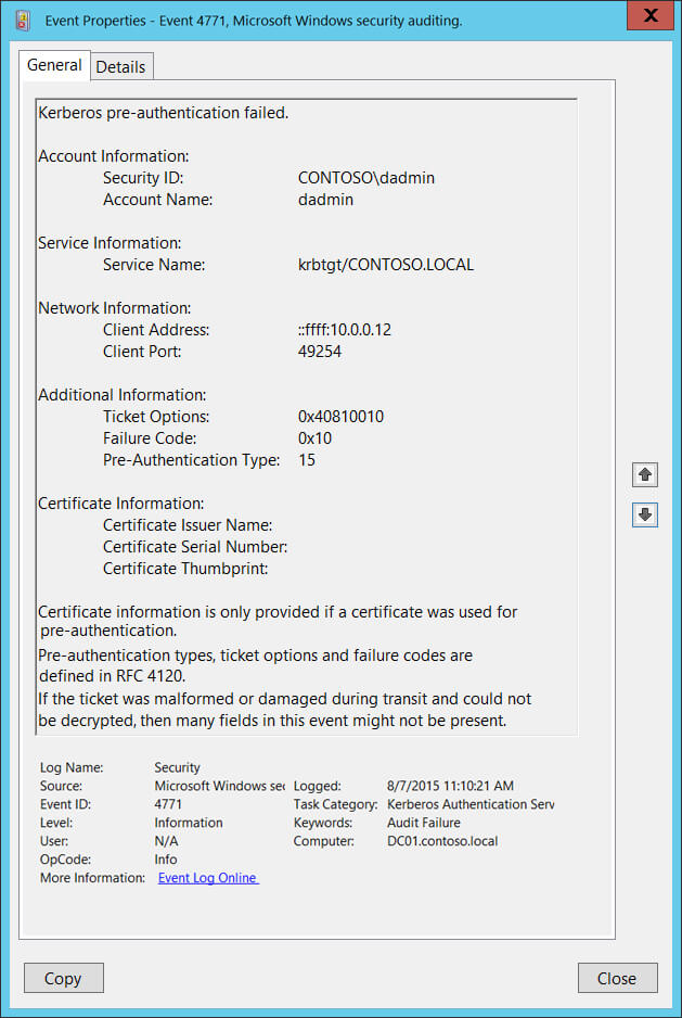 Event ID 4771, “Kerberos pre-authentication failed,” is a common security event in Windows environments.