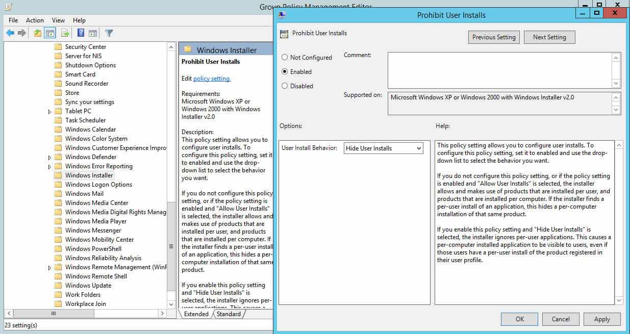 When you give users the freedom to install software, they may install unwanted apps that compromise your system. System admins will usually have to routinely do maintenance and cleaning of such systems. To be on the safe side, it’s advisable to prevent software installations through Group Policy: