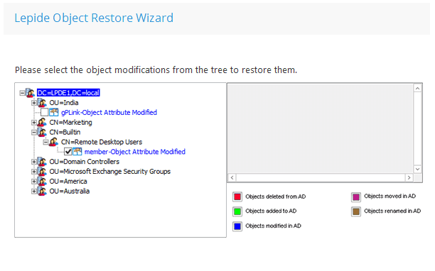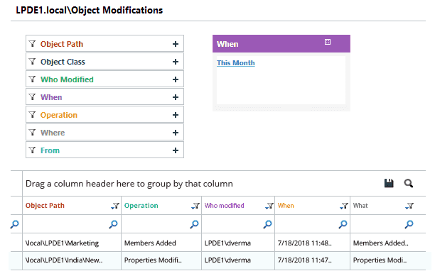 LepideAuditor for Active Directory periodically captures backup snapshots of Active Directory objects and saves their state. You can use these snapshots to generate historical reports on the state of users, groups, computers, and organizational units (the four important objects) at any given point in time. It gives you a clear picture of exactly when any of these objects were created or modified and what it’s properties are.