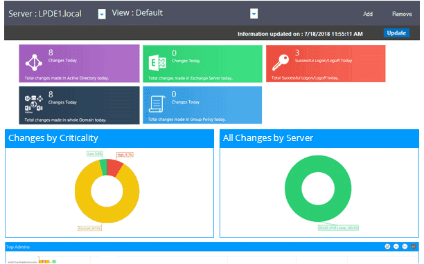 We allow you to keep track of all changes as they happen. All of our auditing solutions provide you with one log per change showing who, what, where and when the change was made. We then provide this data to you through over 40 relevant reports to help you address PCI, SOX, GLBA, HIPAA and GDPR reporting requirements along with all manner of security and IT operations tasks. We specifically monitor changes made to active directory objects, mailbox databases, exchange policies, storage groups, all of which you can drill down and select based on the object class. All of the reports are delivered on schedule either in CSV, PDF, HTML, DOC or TXT or via secure web console for further manipulation as needed.