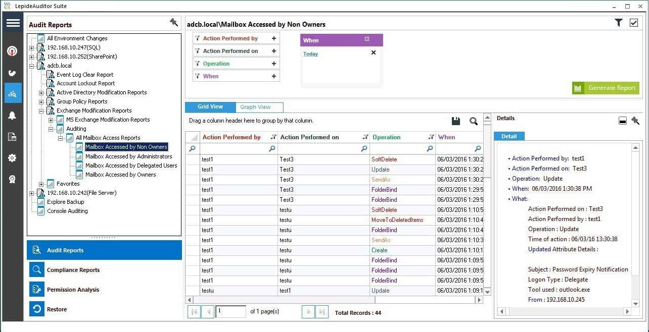 Perhaps your CEO has a PA with access to their mailbox, or maybe you have some shared mailboxes you just want to keep a track of. Whether it’s for HR, Security or just good practice in such situations you really need to make sure you have proper auditing in place. With this solution you can audit based on specific user access and instantly get alerts and receive regular reports showing you who, what, where, when and where from a specific mailbox was accessed and what they did. And if you need even more granular Exchange utilization reports, we also have a separate solution – Lepide Exchange Reporter – you may be interested in looking at.