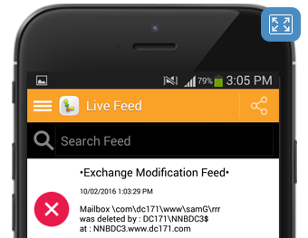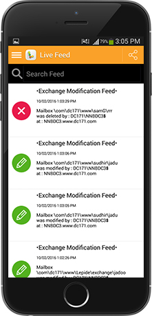 To help IT teams monitor Exchange Server changes while out and about we have provide a Mobile App. Our LepideAuditor App shows a live feed and real time alerts of Exchange Server changes as they happen straight to any Apple device such as an iPhone or iPad or any Android phone or tablet.