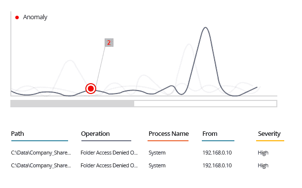 Our file server auditor is a simple way of keeping track of all changes as they happen. The predefined audit reports contain details regarding all attempts of file or folder creation, deletion, copy, move, rename, and other modifications. We also detail the time, drive, folder, file name, process and event. You can track what has happened to a file or folder since its creation, see who has accessed or modified it, and ultimately who has deleted it.