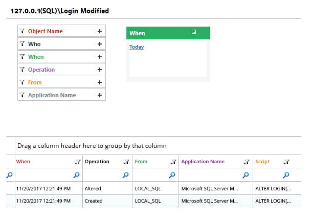 Lepide SQL Server Auditor provides you with a simple means of seeing who, what, where and when changes are made to your SQL servers and automatically sends you real-time or threshold-based alerts and detailed reports when needed. It even helps you keep track of the overall health of your SQL Servers.